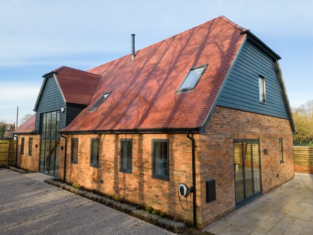 After a thorough heat loss calculation and design, a Daikin Altherma 3 Monobloc unit was chosen to provide heating and hot water to this four-bedroom, five-bathroom house. The house features primarily underfloor heating both upstairs and downstairs, with towel radiators in the bathrooms. We designed the system to a Delta T of 5°C on the primary side and 7°C on the secondary side, with a flow temperature of 35°C to balance comfort and efficiency.